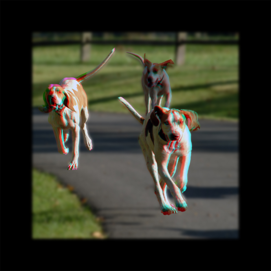 "HOUNDS DSCF0013 3D" is a signed limited edition. Printed with Archival Inks on Epson Ultra Premium Luster Paper. Best viewed with Red Blue/Cyan Anaglyph 3D Glasses. Custom sizes and materials are available.